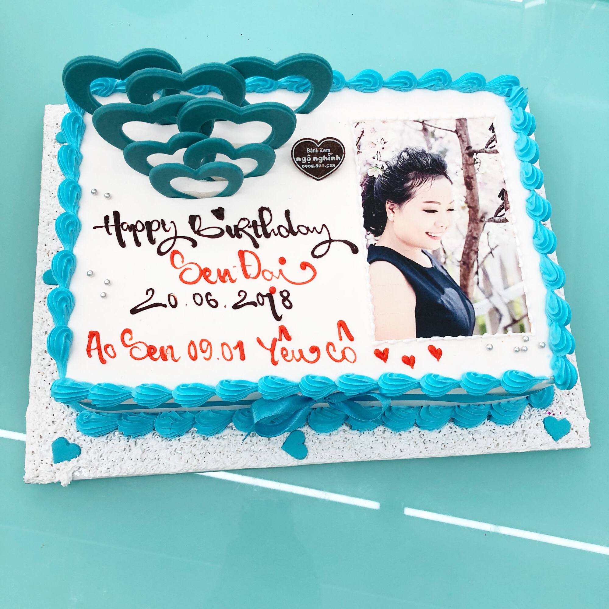 Bánh kem sinh nhật in hình chân dung ăn được gắn khung tim đẹp dễ thương