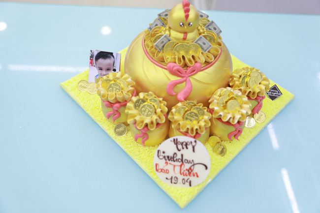 Bánh kem sinh nhật tạo hình 3d hủ vàng lớn và hủ vàng nhỏ có con gà tặng bé trai