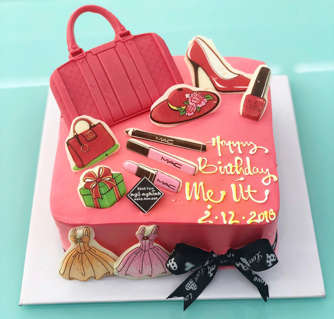 Bánh kem sinh nhật tạo hình 3d túi xách màu đỏ sành điệu đẹp lung linh tặng mẹ