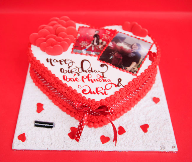 Bánh sinh nhật in hình trái tim trang trí tim socola đỏ đẹp rực rỡ độc đáo