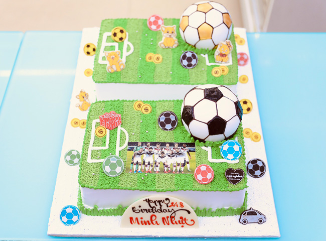 Bánh sinh nhật tạo hình 3d 2 sân cỏ và trái banh có in hình ăn được đẹp độc đáo