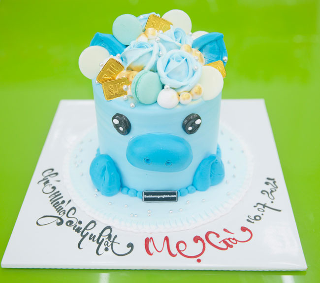 Bánh sinh nhật tạo hình 3d con heo tuổi hợi bắt hoa hồng đẹp độc đáo