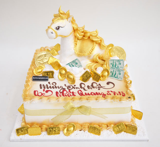 Bánh sinh nhật tạo hình 3d con ngựa tuổi ngọ mạ vàng đẹp mắt độc đáo