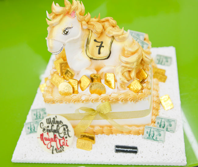 Bánh sinh nhật tạo hình 3d con ngựa tuổi ngọ mạ vàng độc đáo sang chảnh
