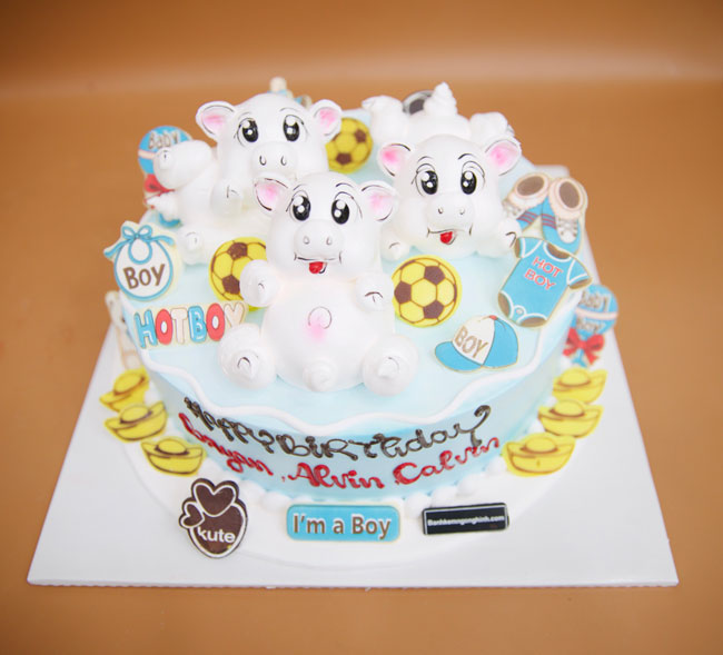 Bánh sinh nhật tạo hình 3d đàn heo con màu trắng tuổi hợi siêu đáng yêu