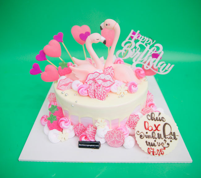 Bánh sinh nhật tạo hình 3d đôi chim hồng hạc xinh xắn lãng mạn tặng bà xã
