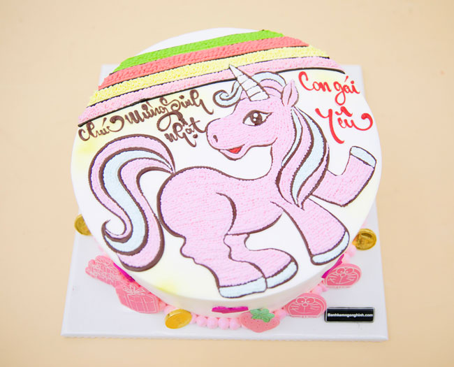 Bánh sinh nhật vẽ con ngựa tuổi hợi màu hồng xinh xắn tặng con gái